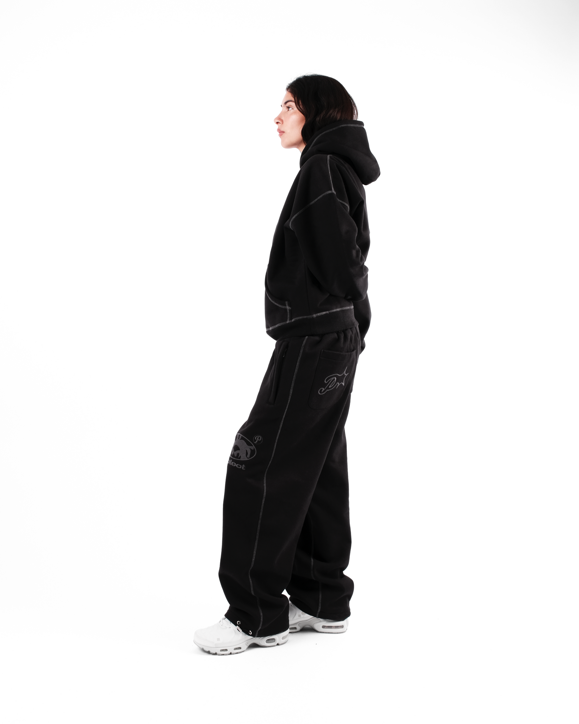 - CHARCOAL OVERLOCK STITCHING THROUGHOUT