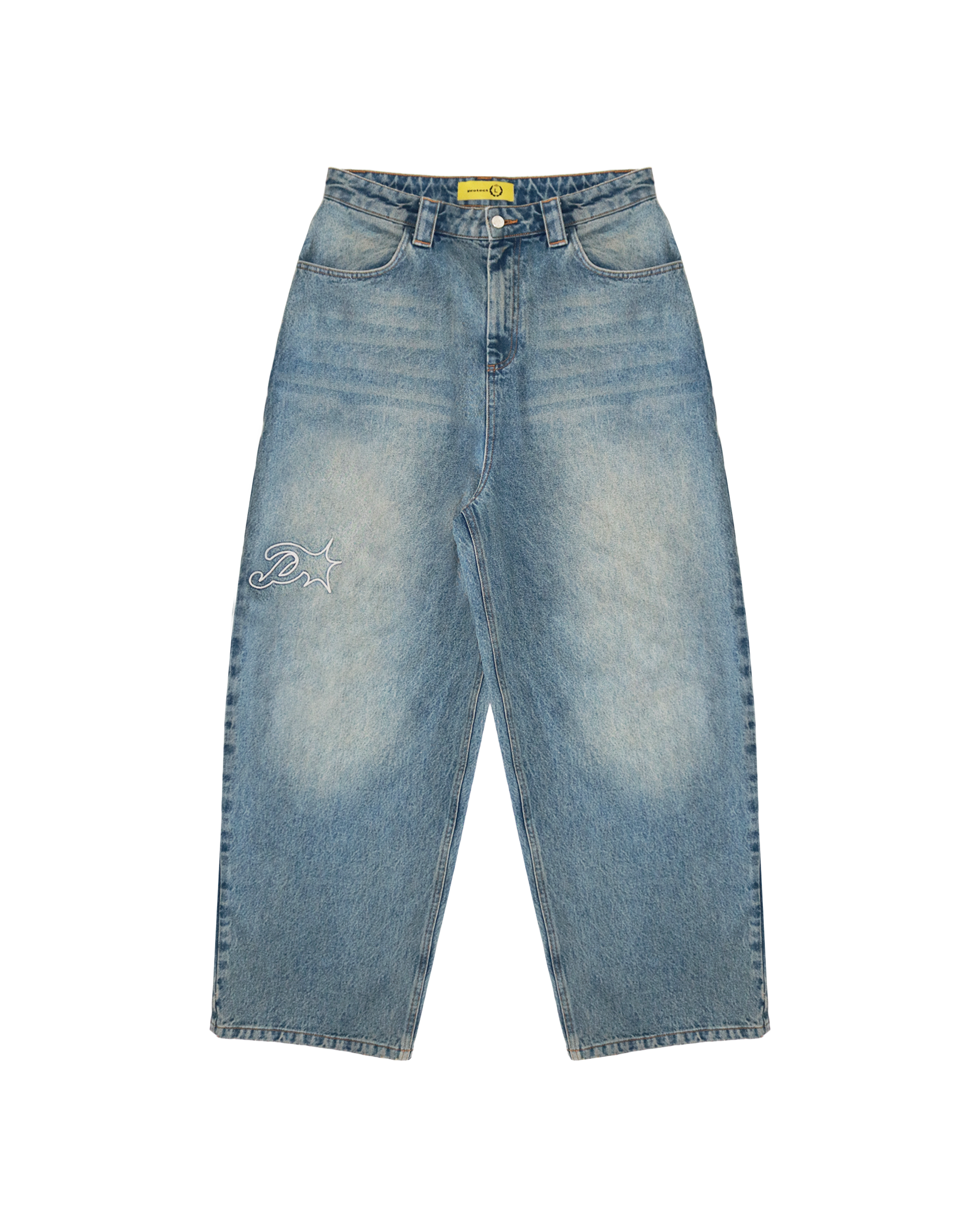 - SPIKE EMBROIDERY ON RIGHT LEG HEM